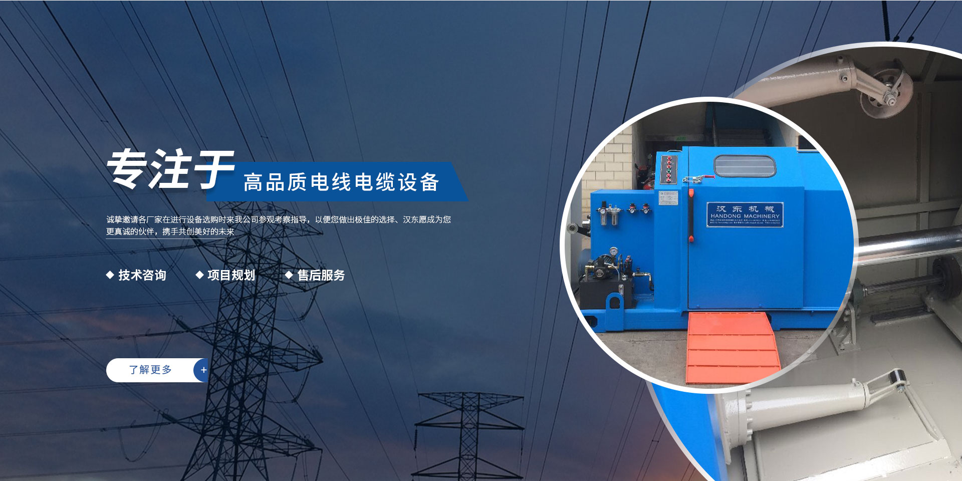 常州漢東機械始創(chuàng)于2006年,是集電線電纜機械設計、開發(fā)、制造、安裝、調試為一體化的高科技企業(yè)。本公司自開業(yè)以來,積極引進日本,歐美等國外電線電纜設備之先進技術,先后成功推出了達到行業(yè)先進水平的電線電纜設備,主要產品有擠出、繞包、束線、成纜等電線電纜固定設備。在提供系統(tǒng)設備的同時,還向客戶提供售前技術咨詢、項目規(guī)劃、以及售后服務。我公司本著“以人為本、科技先導、用戶為上”的宗旨,為客戶提供牢靠的產品與省心的服務。漢東愿成為您更真誠的伙伴,攜手共創(chuàng)美好的未來! 了解更多+大核心優(yōu)勢